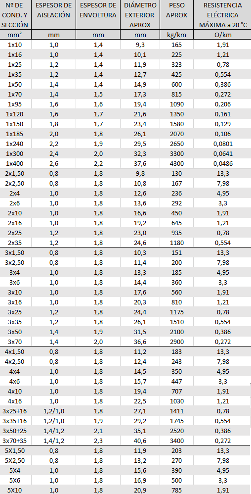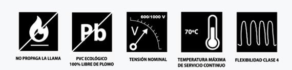 Tensión nominal en corriente alterna Uo/U 0,6/1 kV. Umax 1,2 kV. Cat II.