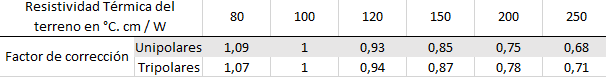 2. Cables de potencia instalados en terrenos cuya resistividad térmica no sea de 100 °C. cm / W