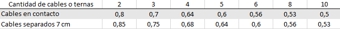 1. Cables de potencia instalados en ambientes cuya temperatura no sea de 40 °C