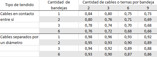 2. Cables instalados en bandejas perforadas, trifásicos o ternas de unipolares agrupados.